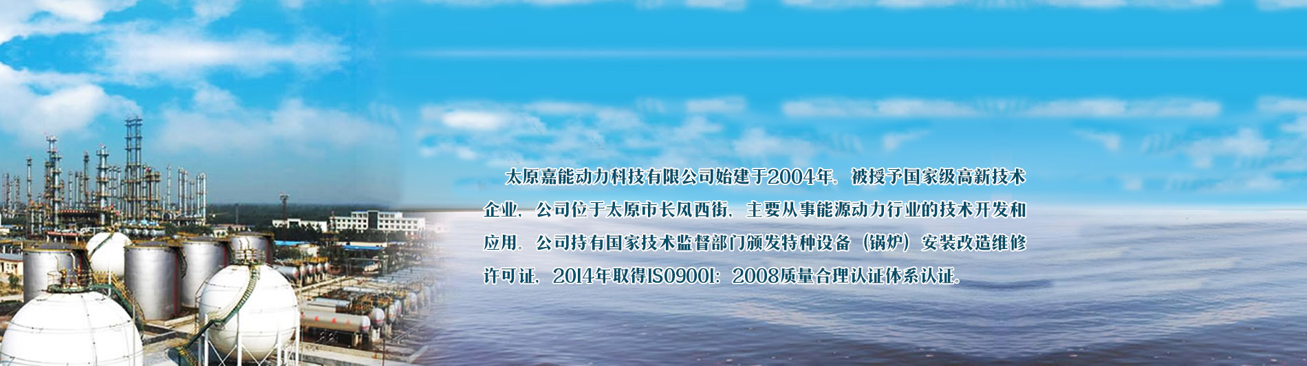 太原嘉能動(dòng)力科技有限公司始建于2004年。公司位于太原市長(zhǎng)風(fēng)西街50號(hào),主要從事能源動(dòng)力行業(yè)的技術(shù)開(kāi)發(fā)和應(yīng)用。并被授予高新技術(shù)企業(yè)。自公司成立以來(lái),先后取得了****技術(shù)監(jiān)督部門(mén)頒發(fā)特種設(shè)備(鍋爐)安裝改造維修許可證;特種設(shè)備(B級(jí)鍋爐)制造許可證;特種設(shè)備(R1、R2級(jí)壓力容器)制造許可證。是低品位余熱利用和鍋爐改造的專(zhuān)業(yè)公司,已擁有十多項(xiàng)專(zhuān)利,目前在全國(guó)處于領(lǐng)先地位